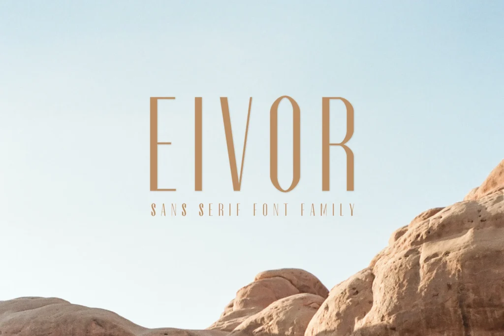 Eivor is simple yet stylish. Its narrow proportions make it ideal for packaging, titles, or designs where space is limited but elegance is essential.